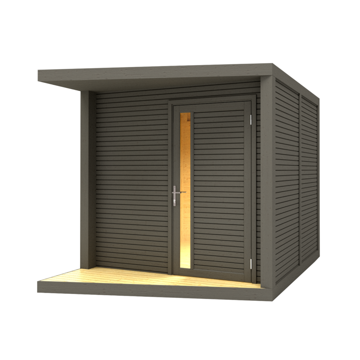 Avec ses lignes épurées, ses avancées asymétriques au sol et au plafond, et son élégante finition gris anthracite, l’abri Neris apporte une touche résolument contemporaine à votre jardin. Sa porte vitrée intégrée laisse entrer la lumière naturelle, créant une ambiance chaleureuse et moderne, idéale pour un espace polyvalent.